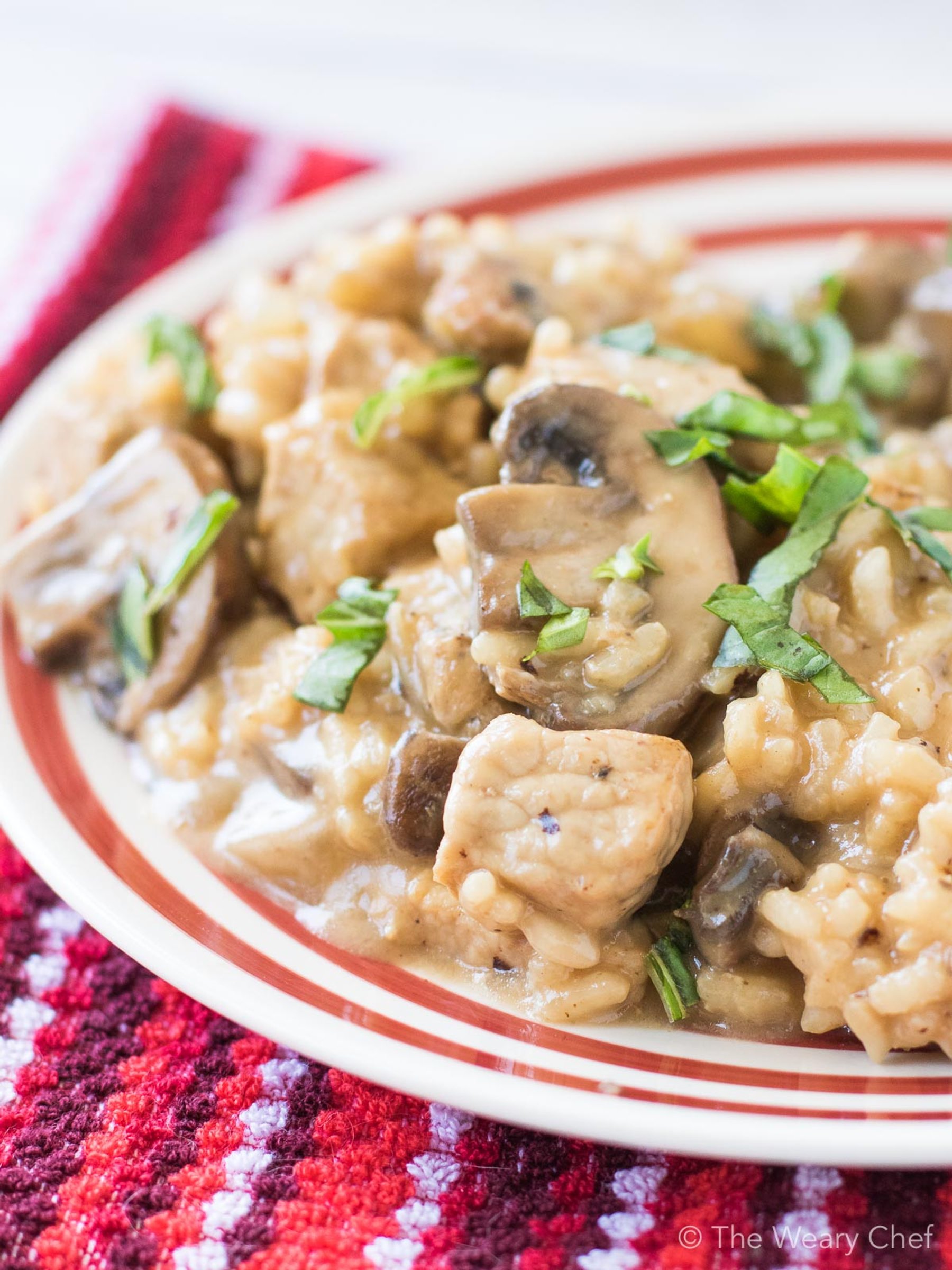 Pork Mushroom Risotto might sound fancy, but it’s very easy to make and has the down home flavor of rice and gravy!