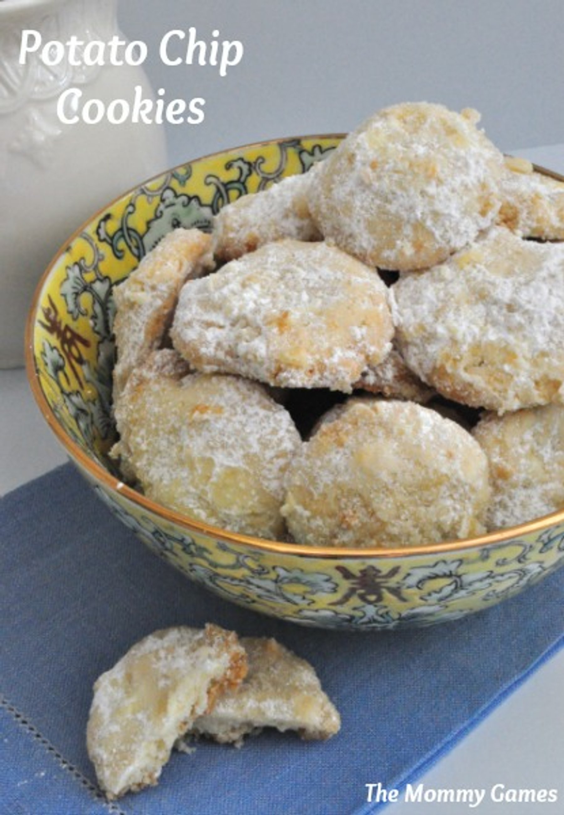 These super addictive treats are similar to Danish wedding cookies - shortbread covered in powdered sugar, but slightly lighter and with a tiny crunch. If you don’t tell people that you've thrown in potato chips, I doubt anyone would figure out just what gives this cookie its extra special element. These would be the perfect treat to bring to a party or barbecue. Bet you can't eat just one!