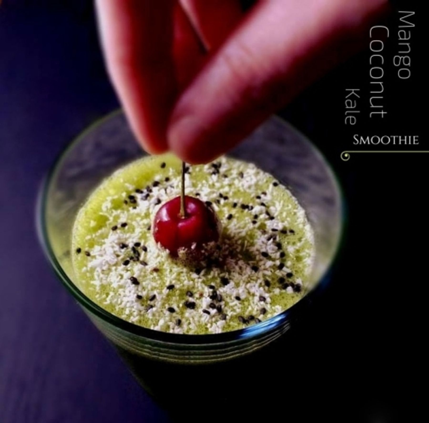Powerpacked Mango-Coconut-Kale Smoothie ~ It\\\'s a Delicious n Healthy combination for Perfect Summer Smoothie ~ Try it for Breakfast or Anytime Snack.