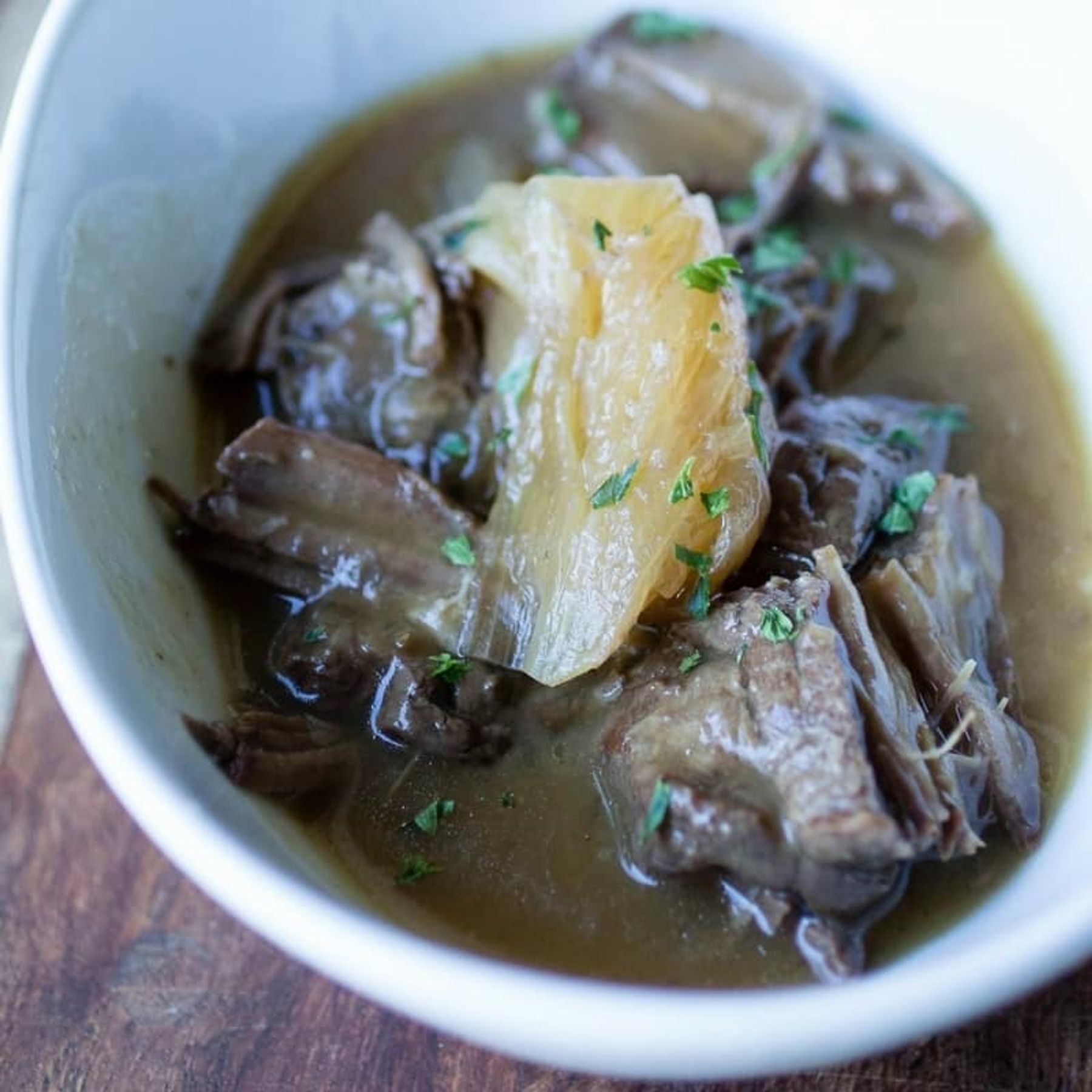 PRESSURE COOKER BEER BRAISED STEAK WITH ONIONS