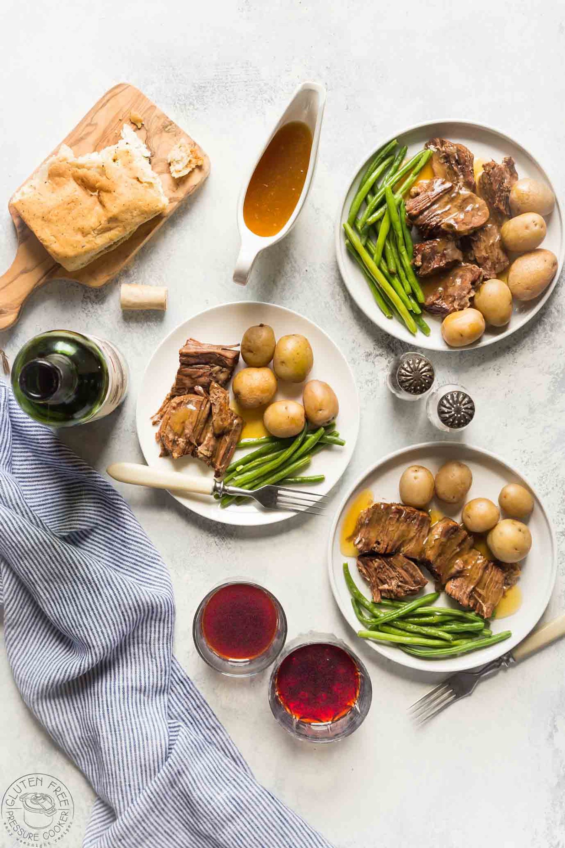 Now you can cook a pressure cooker pot roast in in less than an hour! This easy recipe makes a healthy weeknight meal that cooks quickly in your instant pot or electric pressure cooker! It’s gluten free, paleo and whole 30, and low carb.