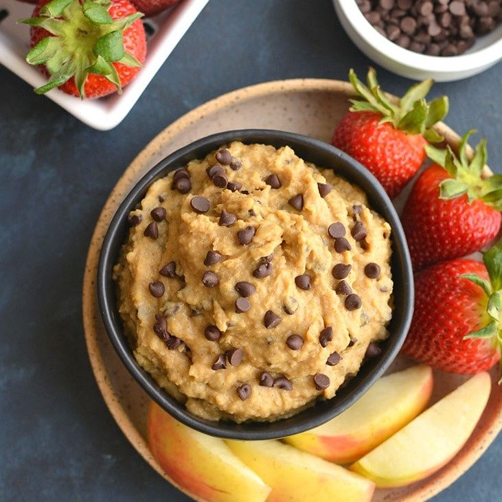 Protein Chickpea Cookie Dough! This eggless no bake cookie dough is made in a blender with chickpeas and protein powder. Low in sugar, refined sugar free and dairy free, this goodie makes the perfect healthy snack treat for anytime of day. Vegan + Gluten Free + Low Calorie