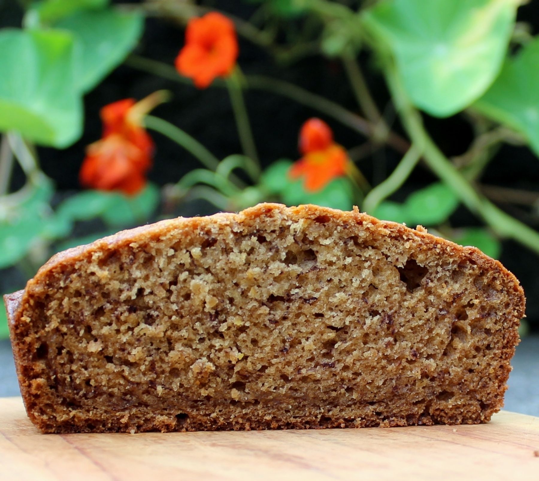 Make this healthy banana bread recipe with coconut oil, flax meal and pure maple syrup. Enjoy delicious banana flavor in a healthy, robust bread.