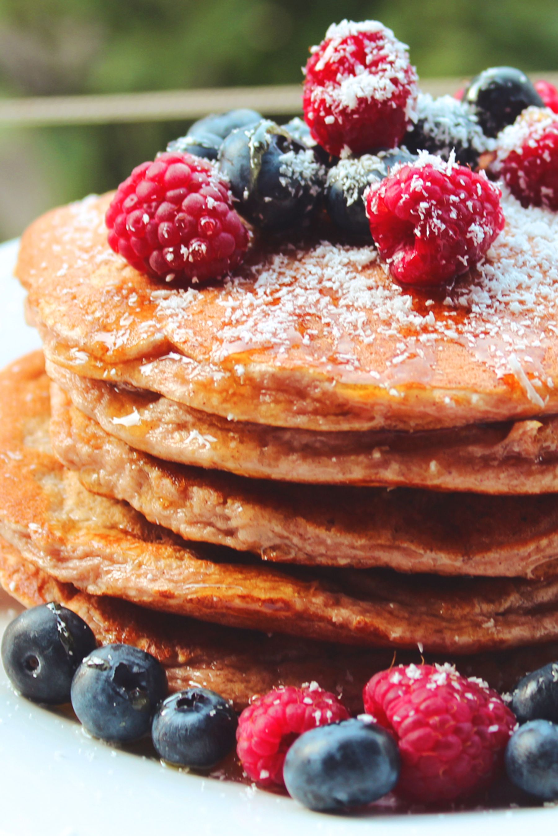 1. In a large bowl mix eggs, baking soda, water, protein powder, coconut flour and cinnamon. Blend ripe banana and oats separately and mix it all together.