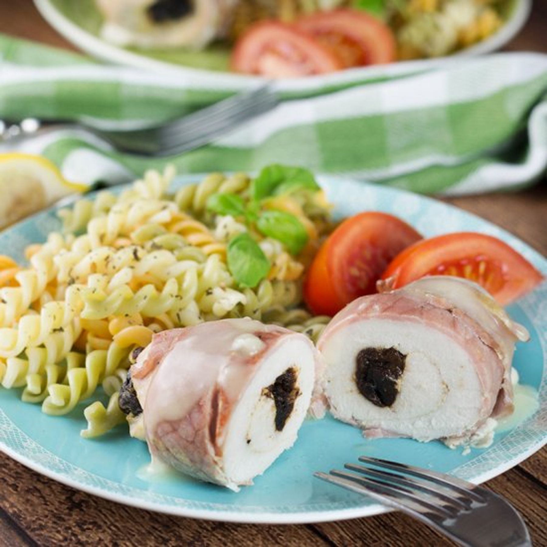Prune Stuffed Bacon Wrapped Chicken Breasts