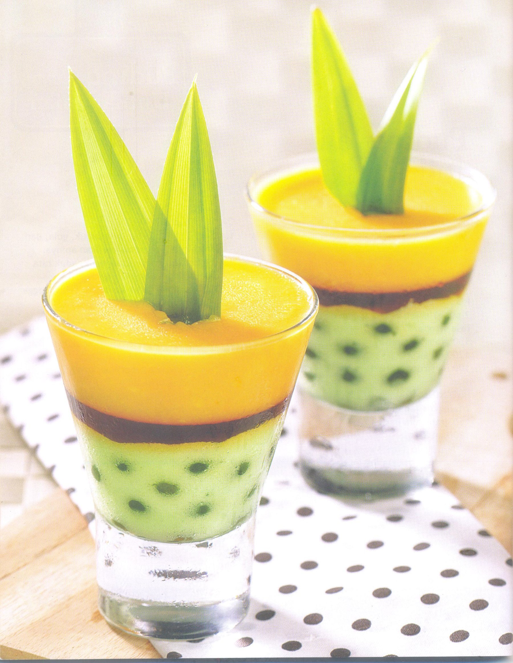 Coconut pudding : cob jelly , coconut milk , sugar , salt , and pandan leaves to boil . Lift .
