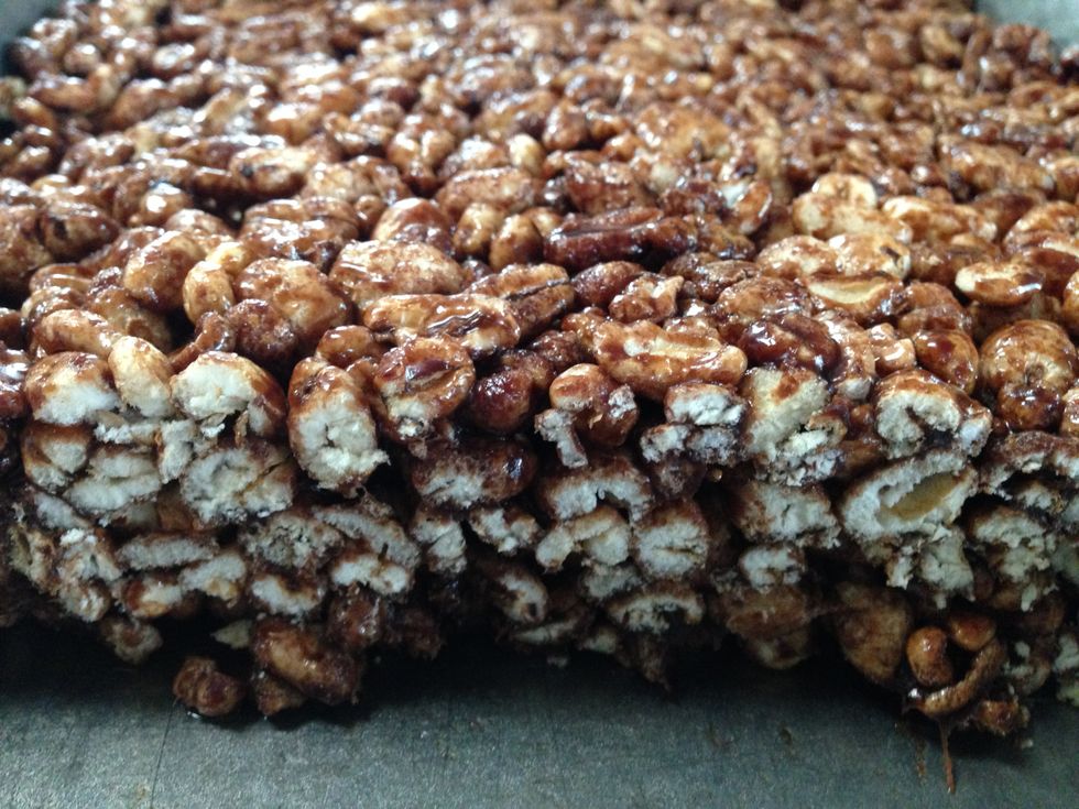 Scoop puffed wheat cereal into a large bowl; set aside. Place margarine, cocoa, brown sugar, syrup, and vanilla into a pot and stir over medium heat until combined. Let mixture boil for 1-2 minutes. No...