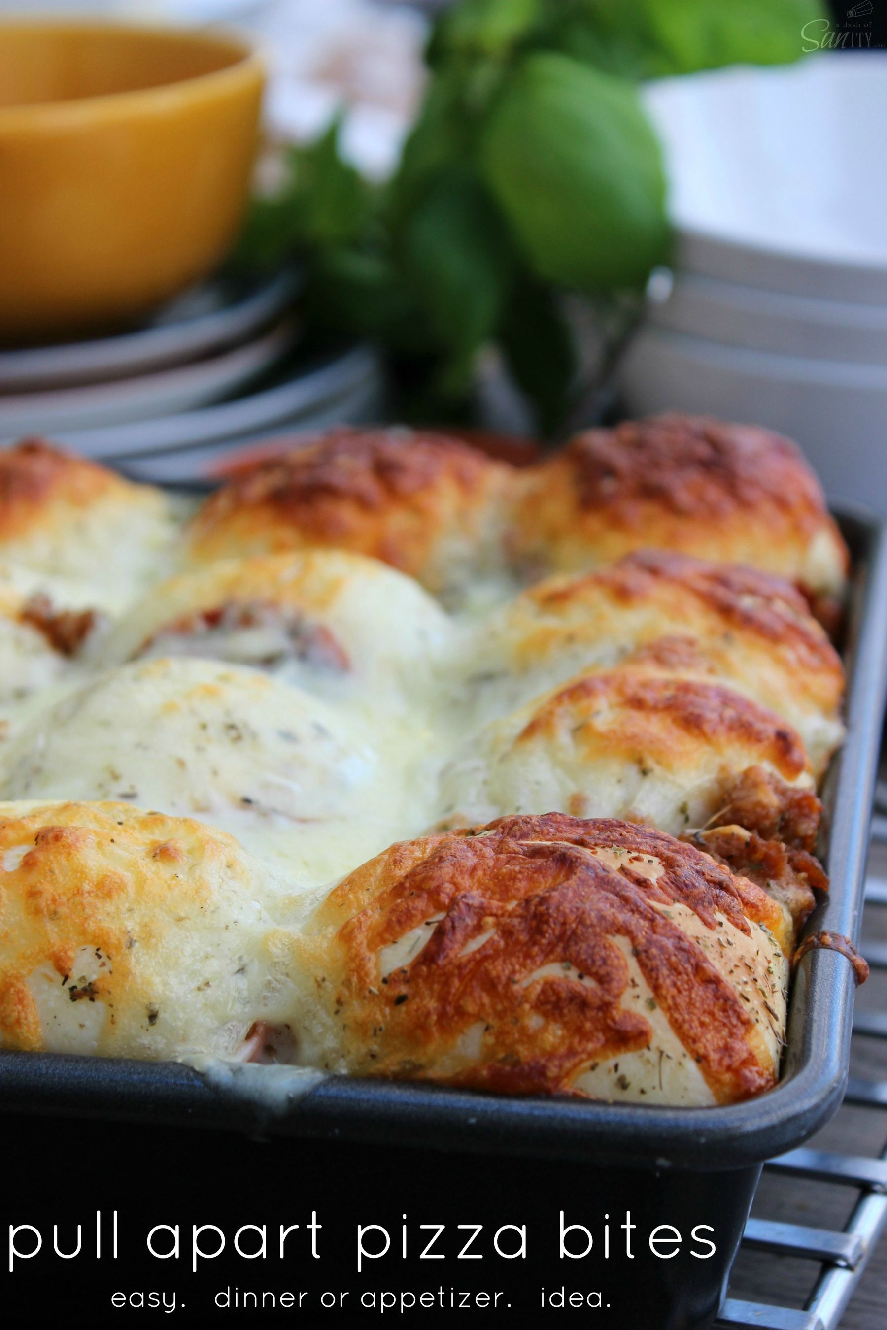 Dress with the toppings you like from your favorite pizza and make game day a winner, whether your teams wins or not, with these Pull Apart Pizza Bites.