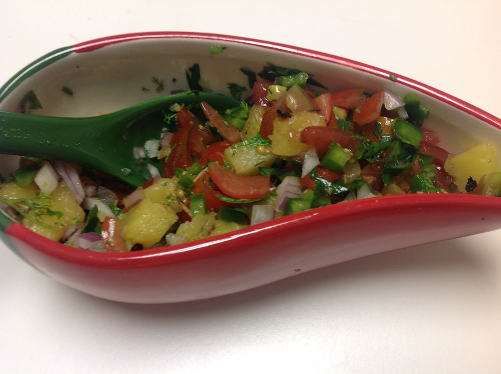 In the morning place all the ingredients through the salt and pepper into the crock pot and set to low. Leave to stew for 6-8 hours. Before removing from the pot fix the salsa (see below).