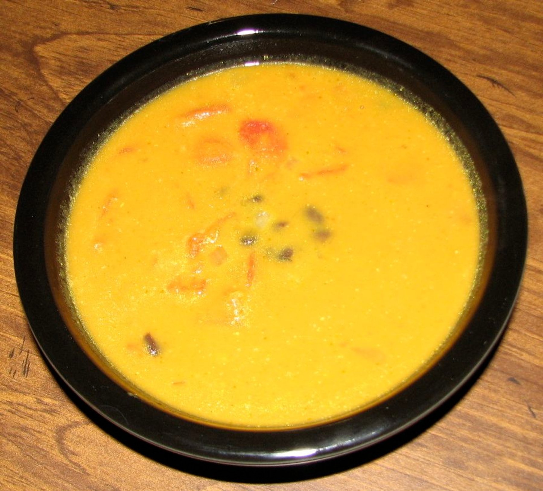 This is one of my all time favorite soups! I'll admit, when I first heard pumpkin, black bean and curry I was a little skeptical but my friend had made it for a book club meeting so I tried it. I fell in love! Even if you think you don't like curry you will like this soup. The curry (and the cumin) add such a nice warmth and there is very little chopping involved (none if you buy frozen diced onion)! Enjoy!