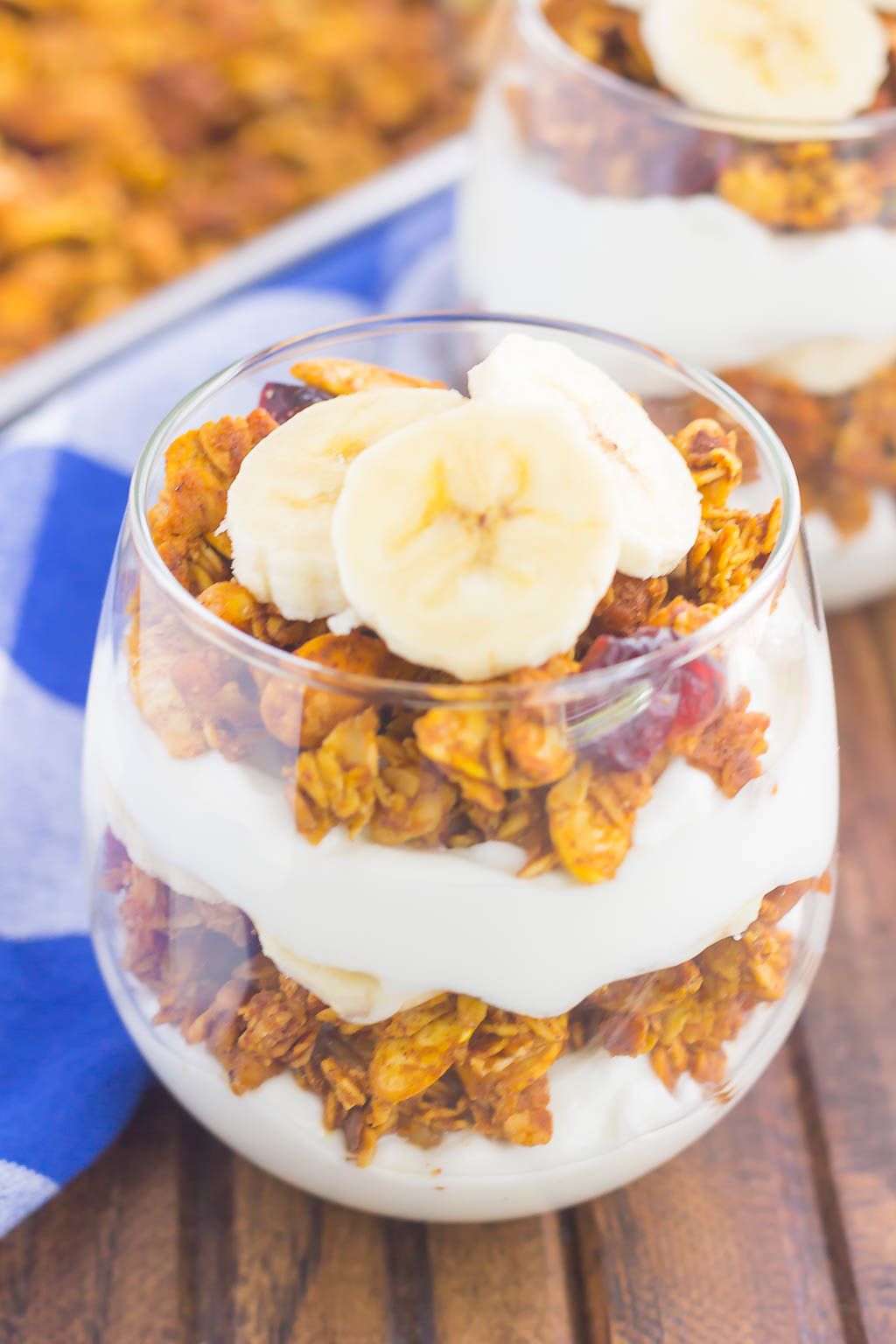 Breakfast Pumpkin Banana Yogurt Parfait Gayle BOctober 12, 2018 85 Pumpkin Banana Yogurt Parfait makes a deliciously simple breakfast or snack!Check out this delicious recipe!See the full directions on my site