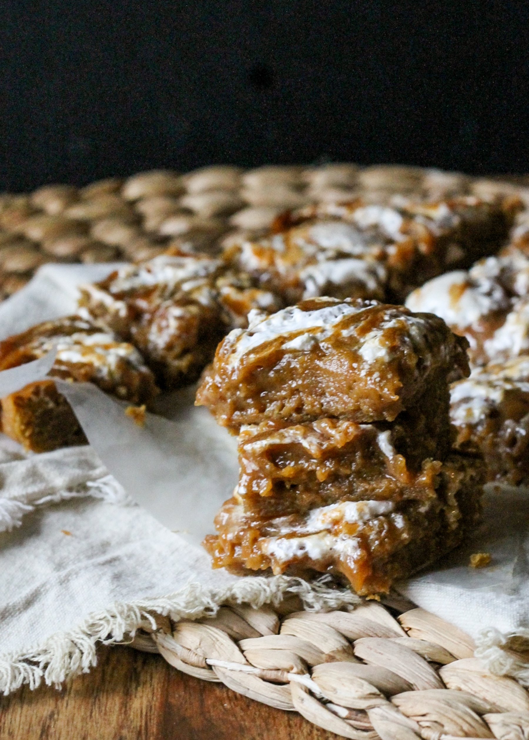 These Pumpkin Caramel Marshmallow Fluff Bars are gooey, sweet, and irresistible! These easy bars are sure to be devoured quickly.