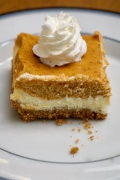 Pumpkin pie meets cheesecake with delicious creamy layers of cheesecake.
