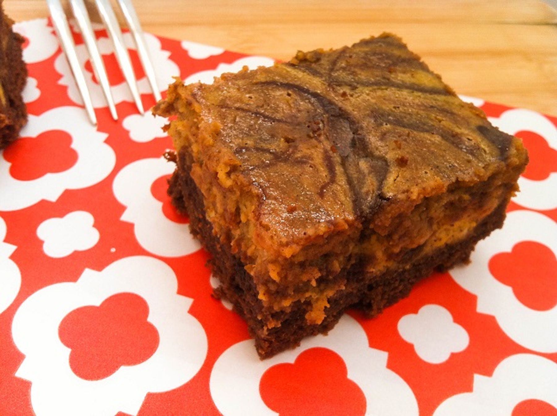 Delicious fudgy brownies topped with a moist layer of pumpkin cheesecake swirls. Chocolate meets pumpkin in this amazing fall dessert, just in time for Thanksgiving.
