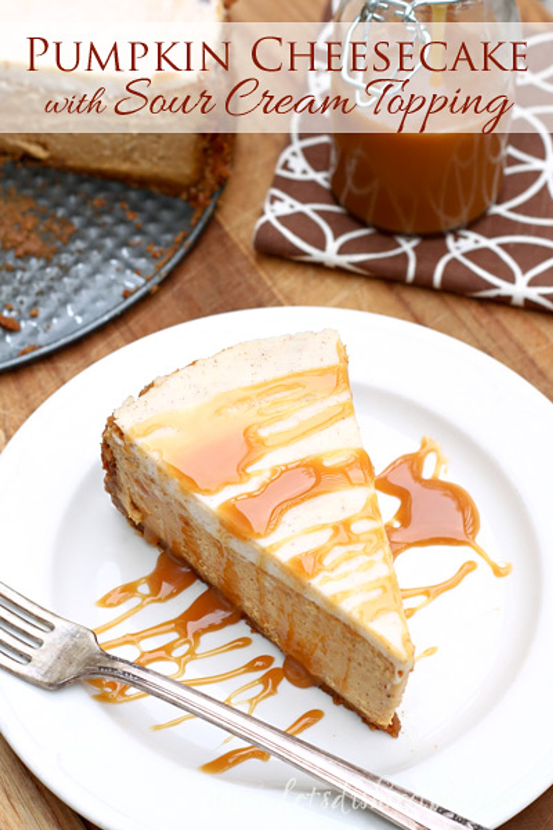 Creamy pumpkin cheesecake with a sweetened sour cream topping.
