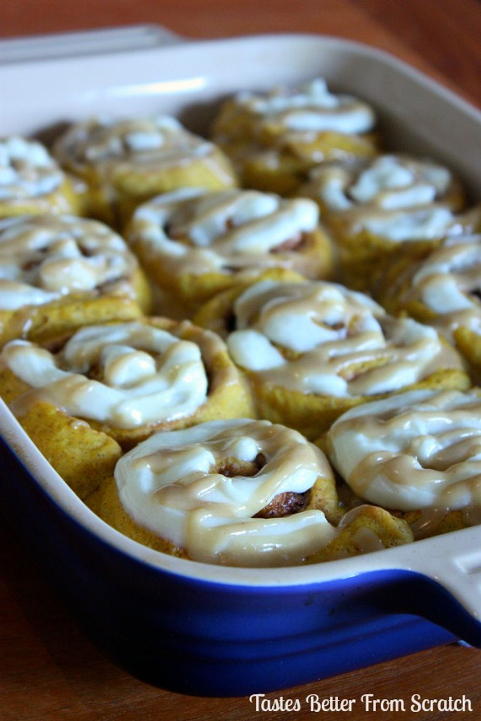 Pumpkin Cinnamon Rolls with Cream Cheese and Caramel Frosting