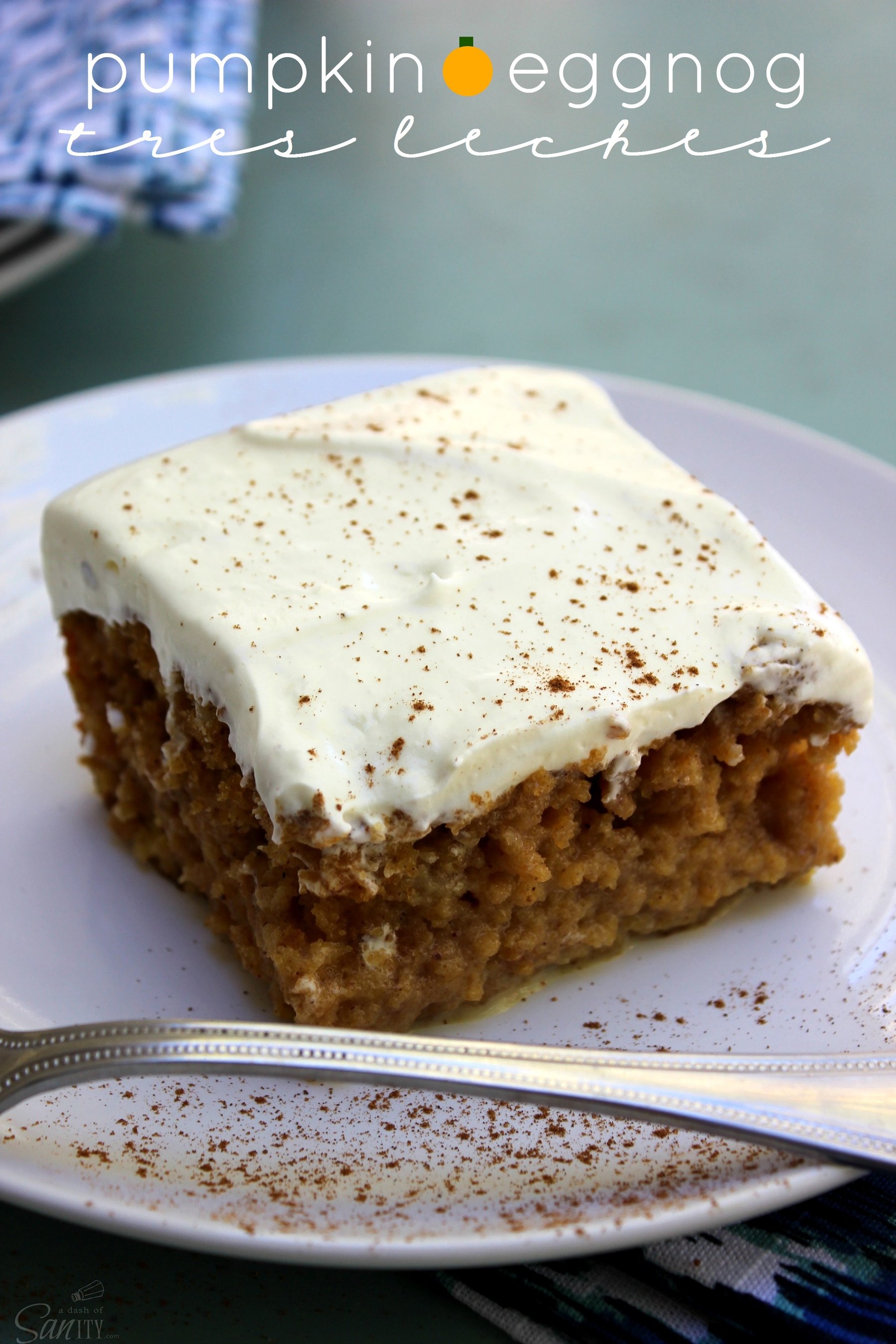 Pumpkin Eggnog Tres Leches is a pumpkin cake soaked in a eggnog-milk custard, perfect for any holiday occasion.