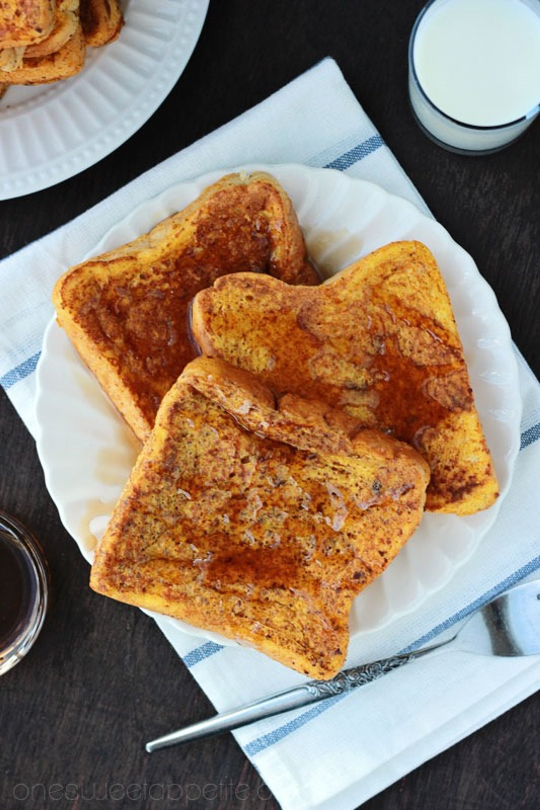 Start your fall mornings with this delicious twist on the classic French toast by adding a little pumpkin. Breakfast never tasted so good.
