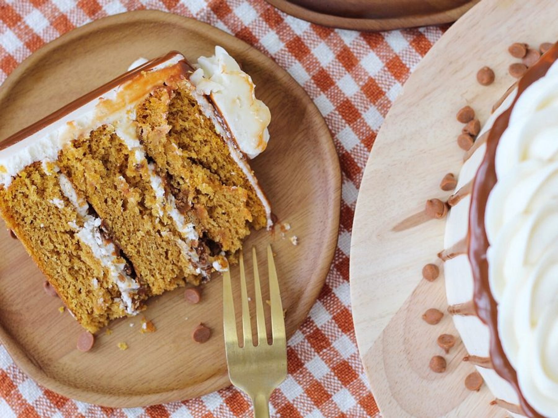 Fall into Autumn with this tender and moist pumpkin cake layers with a gingersnap crumble, cinnamon chip ganache and cream cheese frosting.