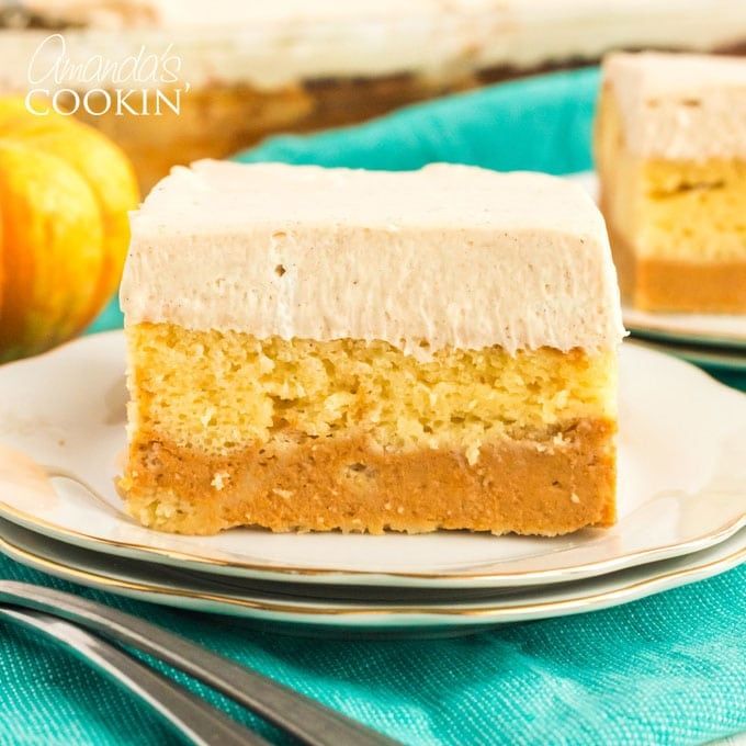 - Prepare box of cake mix according to package instructions, then pour into a lightly greased 9"x13" cake pan. DO NOT BAKE. Set aside.