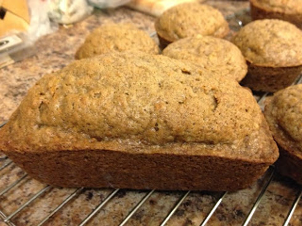 Preheat oven to 325 F. Lightly grease a 9x5 pan or muffin tin.
