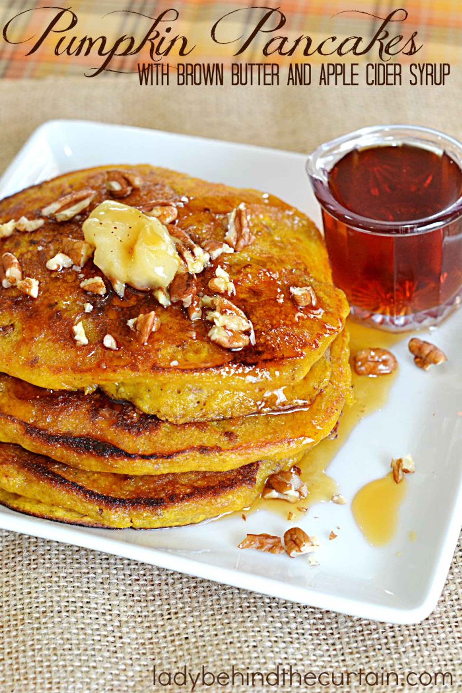 Pumpkin Pancakes with Brown Butter and Apple Cider Syrup