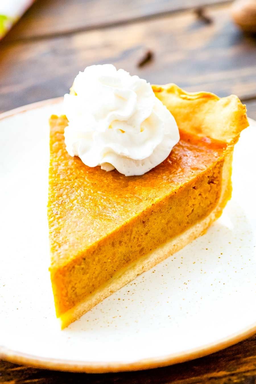 Pumpkin Pie is the quintessential holiday pie recipe! This quick and easy recipe means everyone can make their own pumpkin pie at home for Thanksgiving this year. You can either use a homemade or store bought crust. Then make the filling and bake. It's the easy! Don't forget a dollop of whipped cream on top!