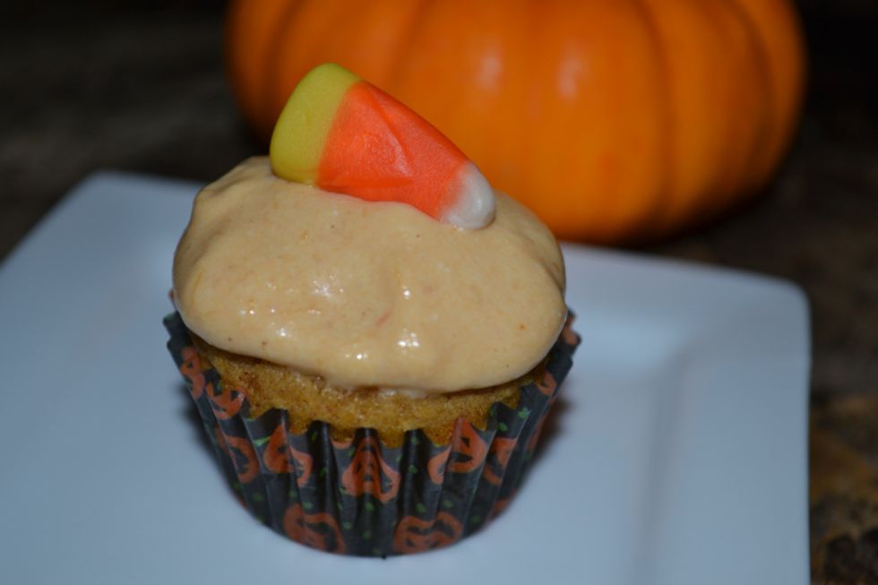 PUMPKIN PIE CUPCAKES WITH PUMPKIN CREAM CHEESE FROSTING