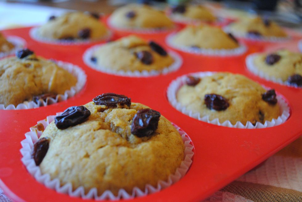 A moist, delicious muffin with yummy gooey raisins and spiced for the holidays.