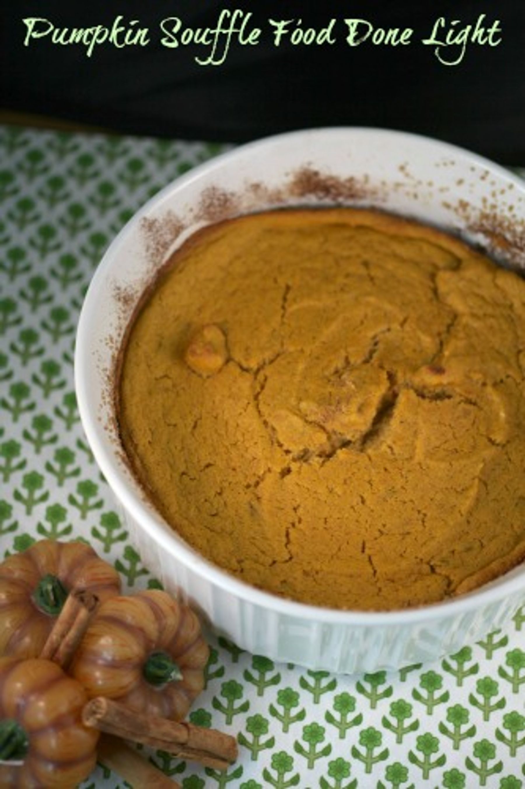 Here is a light and healthy way to end your Thanksgiving feast. Pumpkin Souffle is so delicious, you won't miss the pie.