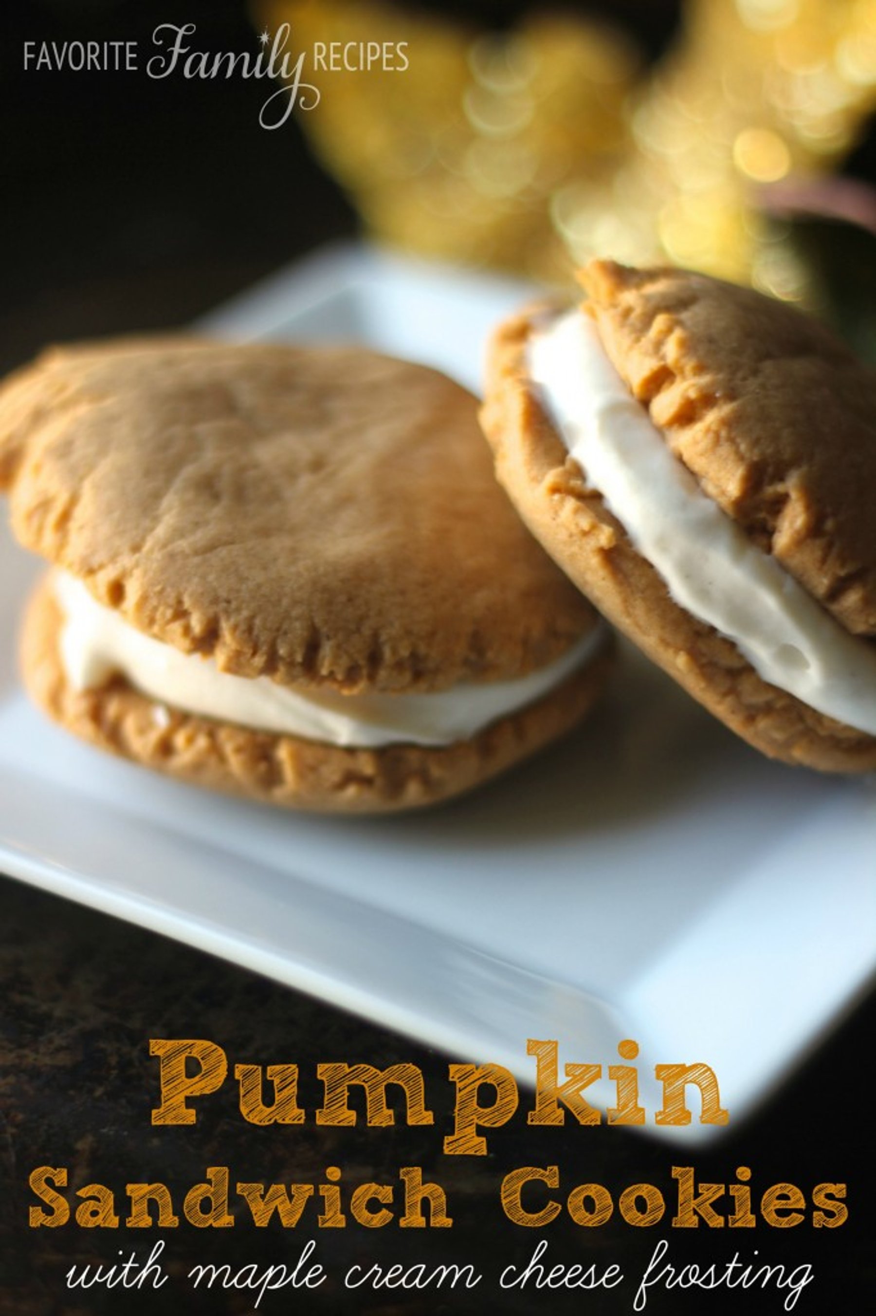 Pumpkin Sandwich Cookies with Maple Cream Cheese Frosting