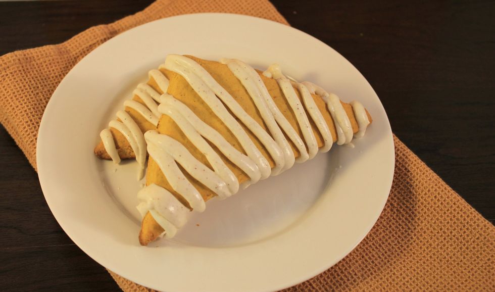 This delicious scone is loaded with pumpkin flavor and smothered with a spiced cream cheese frosting that will leave you licking the bowl!