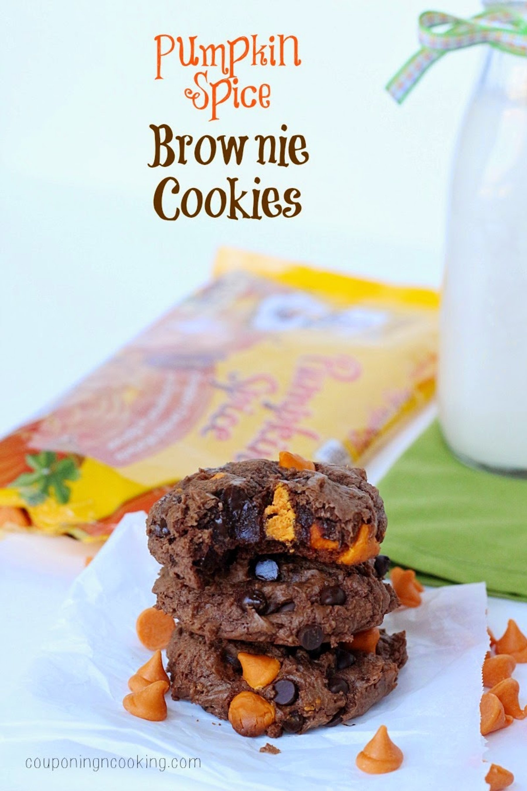 Pumpkin spice morsels in a brownie mix cookies for the perfect taste of fall!