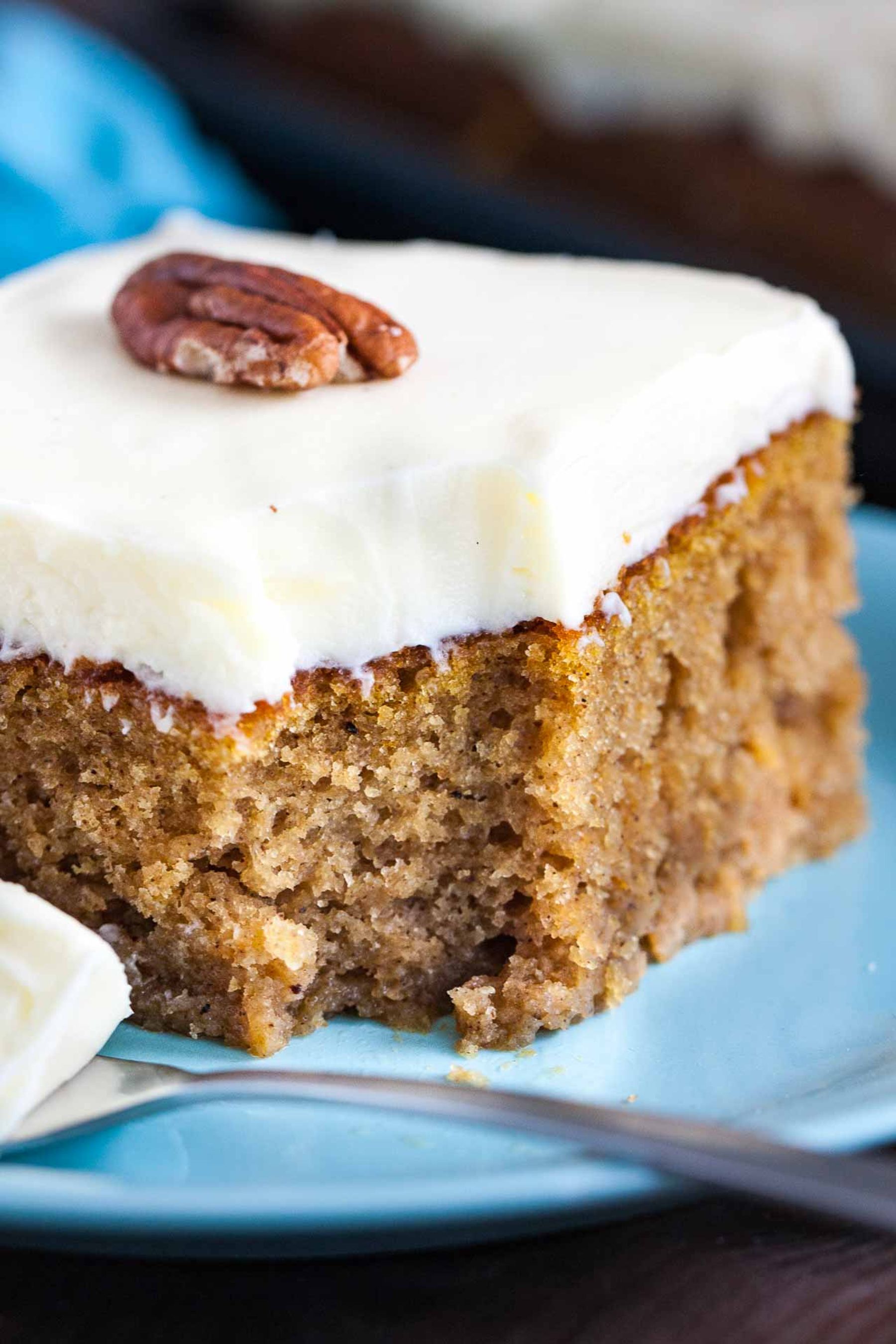 This Pumpkin Spice Cake is moist, tender, and so easy to make from scratch! With the perfect balance of pumpkin flavor and spices, this simple sheet cake is one of the best pumpkin cakes you’ll ever eat.