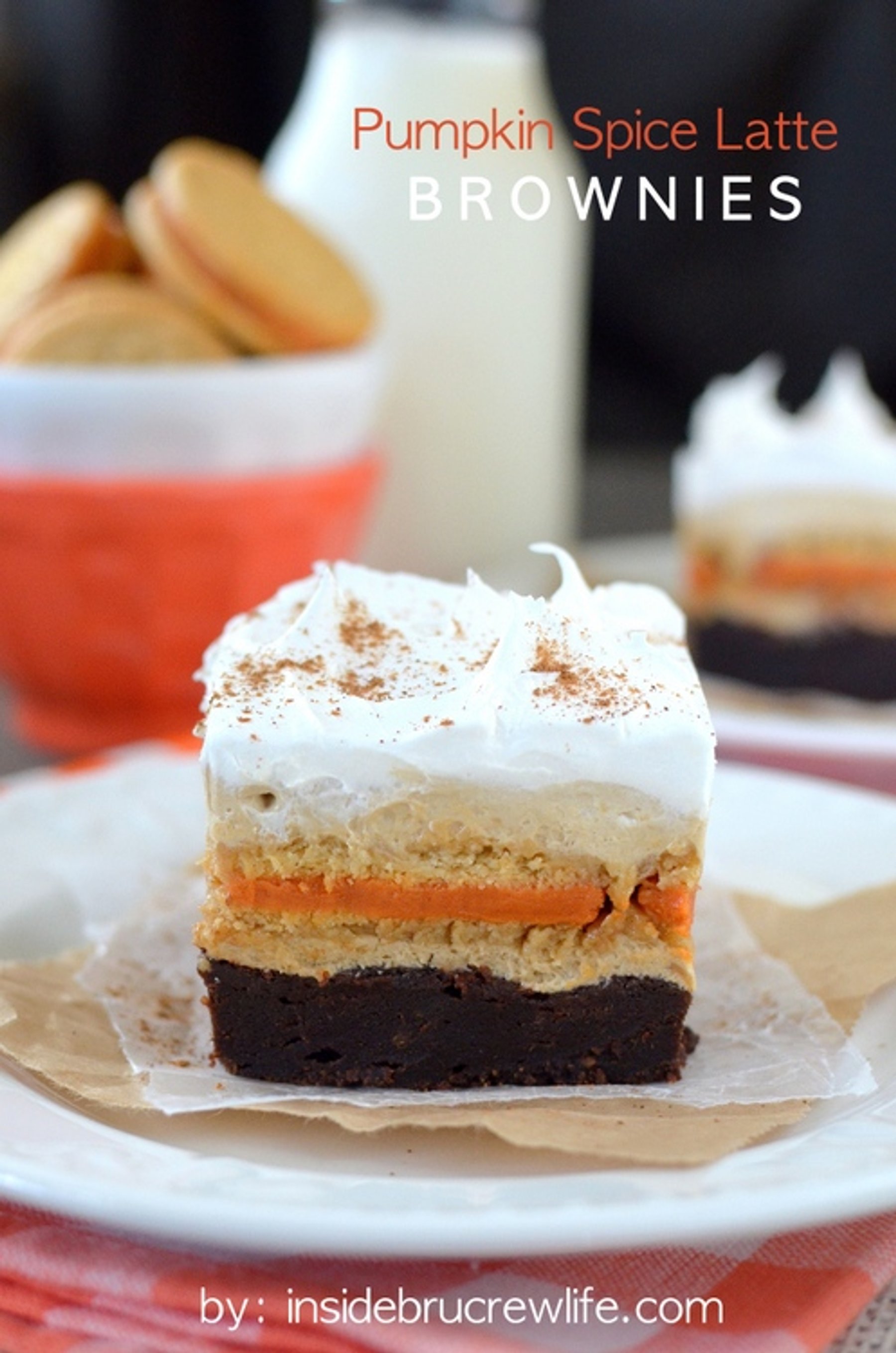 Layers of pumpkin brownies, coffee dipped Oreo cookies, and a no bake coffee cheesecake makes this a fun dessert to celebrate fall with.