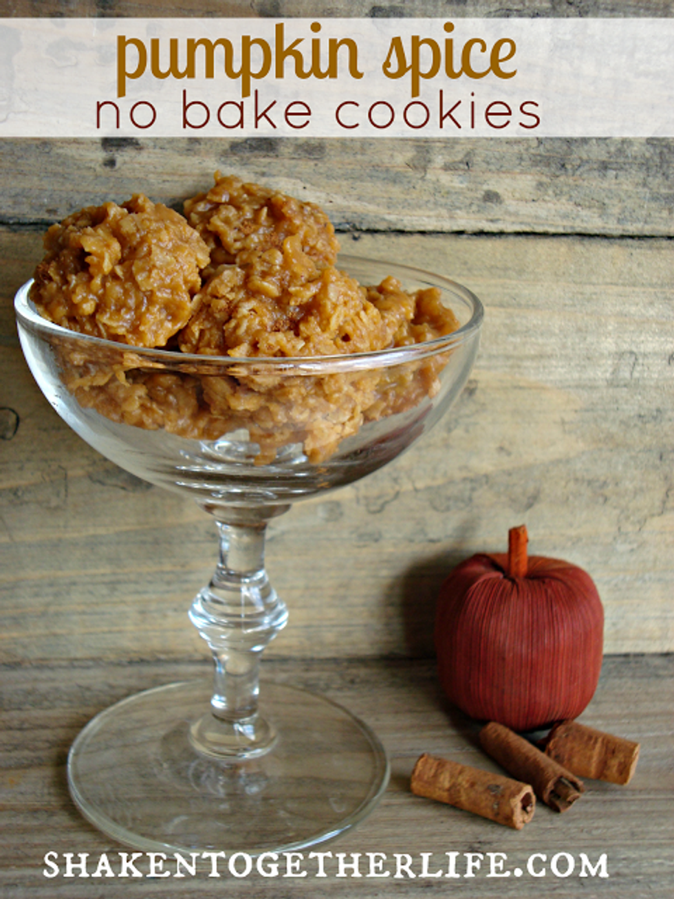 No bake cookies are some of my favorite things ... tasty, easy and no need to heat up your kitchen! And when I saw these pumpkin spice no bake cookies over at Aunt Peg's Recipe Box (pinned to my sweet stuff Pinterest board) ... I knew I wanted to give them a try and share them with you! Just in time for Thanksgiving!! So, let's {taste this} and make these pumpkin spice no bake cookies!! These taste just like a cinnamon-y old school oatmeal cookie with the right amount of pumpkin spie gooness!