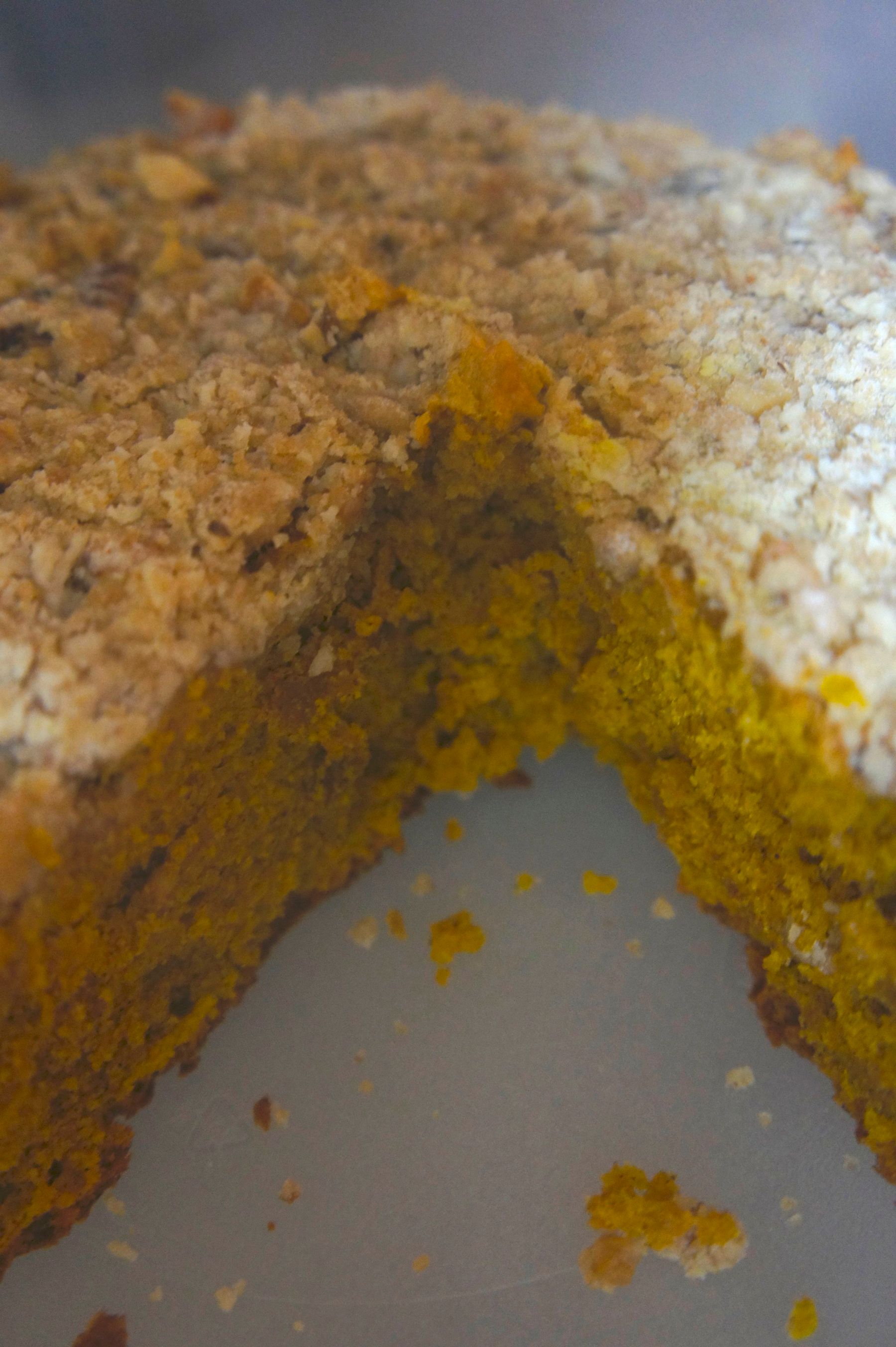 A moist and delicious pumpkin flavored coffeecake with streusel topping.
