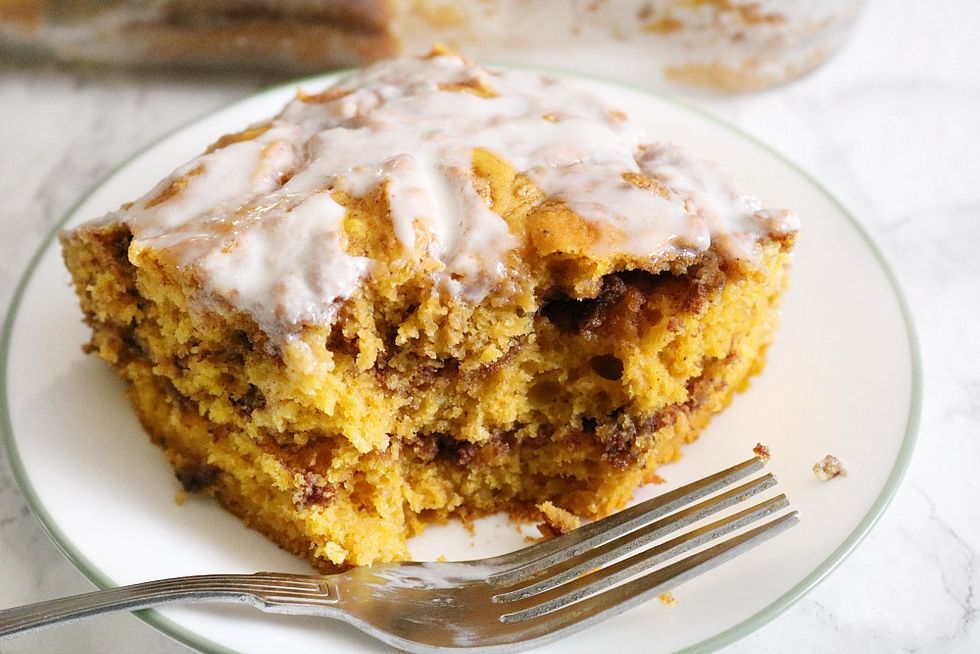 Pumpkin Swirl Layered Coffee Cake & Cream Cheese Icing