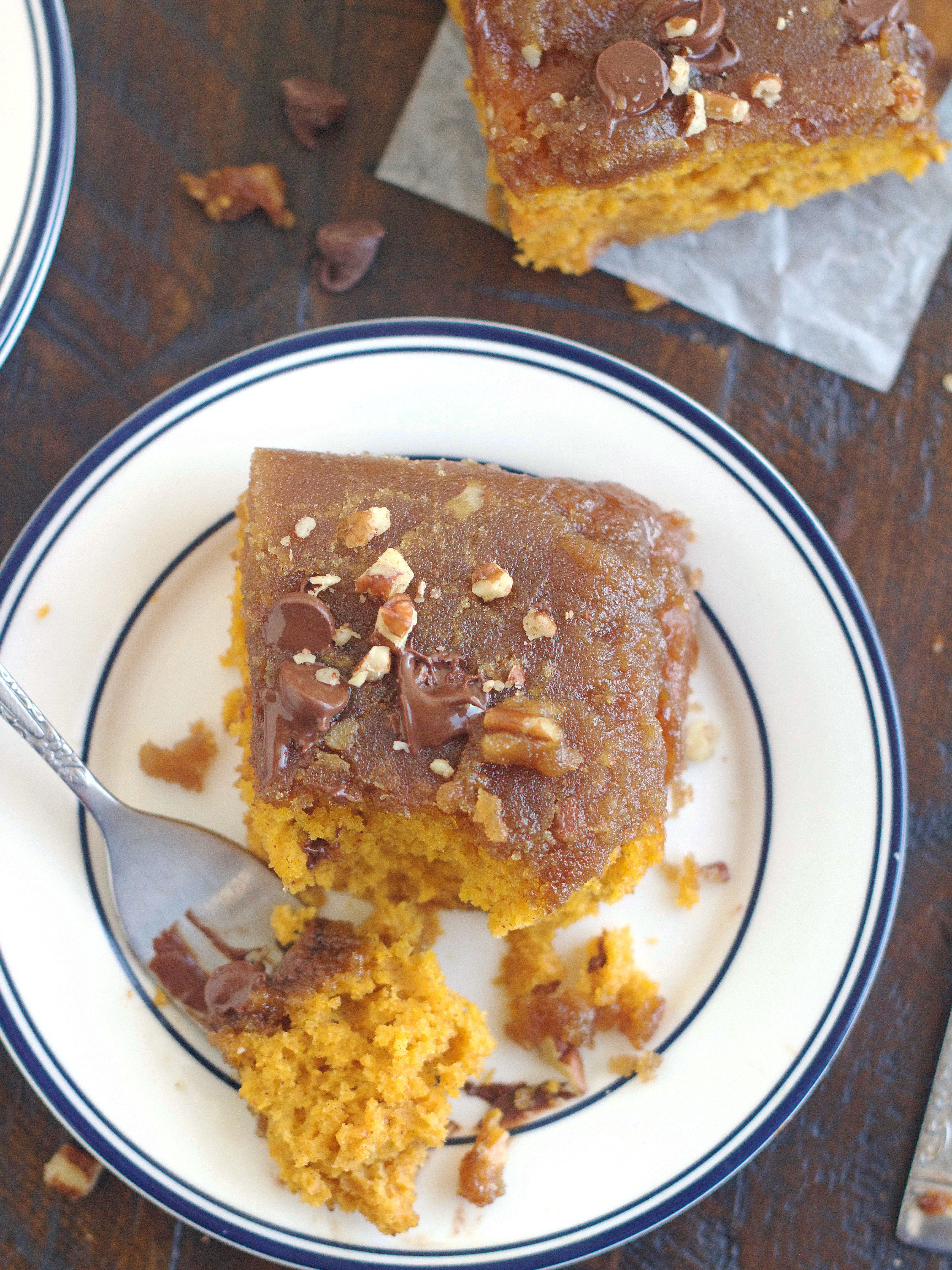 This Pumpkin Upside Down Cake will completely knock your socks off. The buttery, brown sugary topping is to die for. You won't be able to stop at one piece.