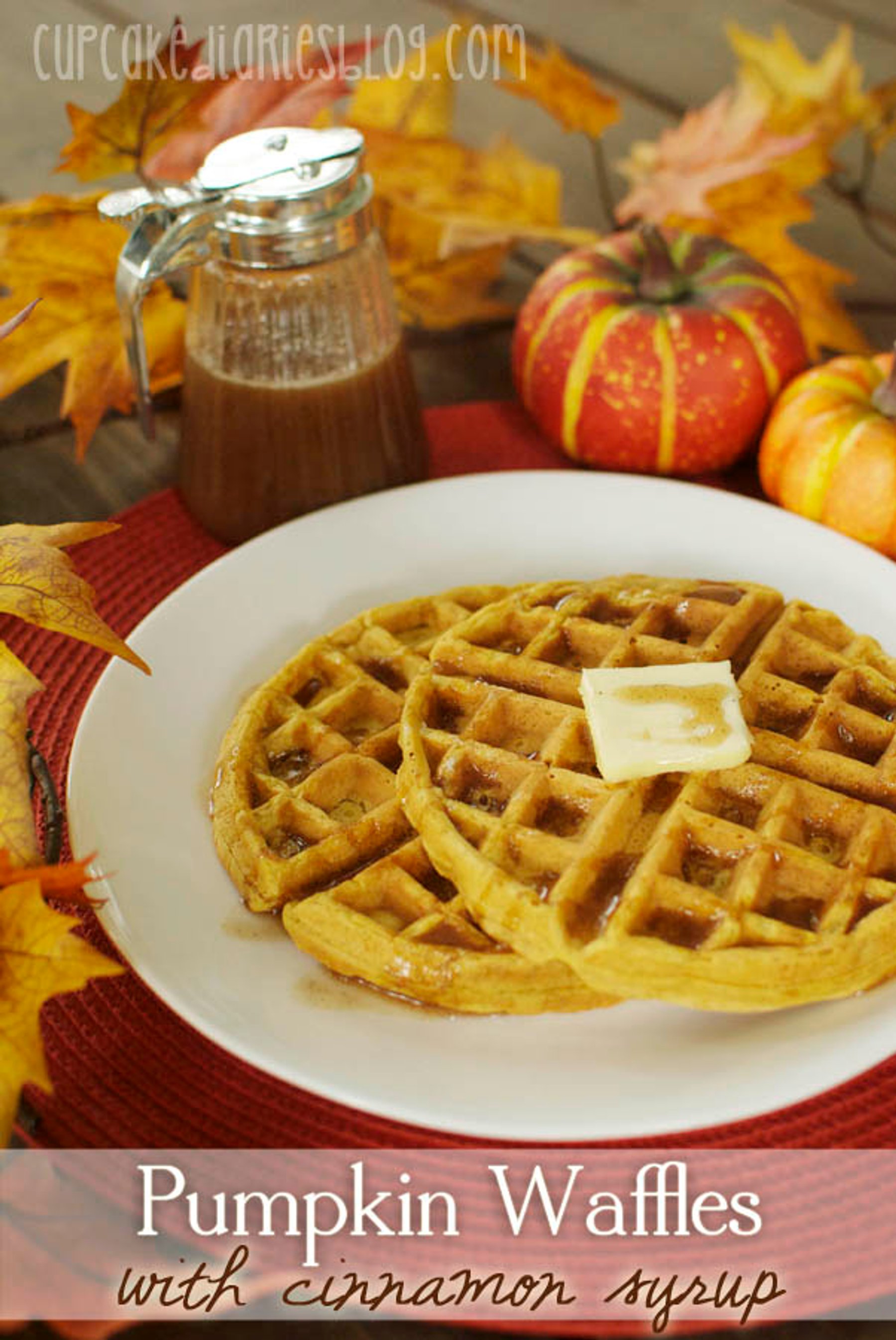 You'll "fall" in love with these amazing waffles and fabulous syrup! This is a must-make dish for this time of year. The sweet cinnamon syrup combined with these soft and pumpkiny waffles is magical!