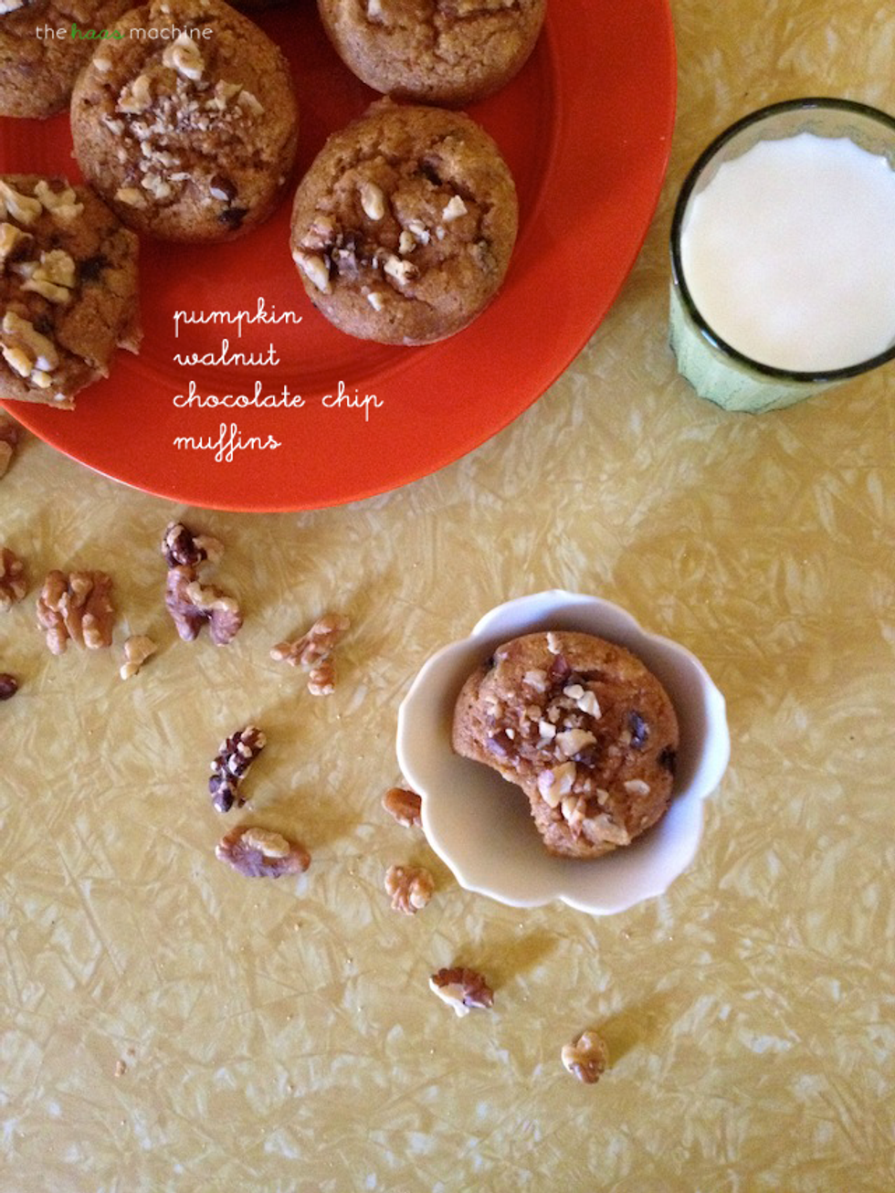 Pumpkin, Walnut, Chocolate Muffins