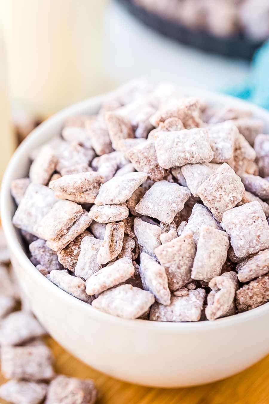 Puppy Chow, or Muddy Buddies, is a classic recipe from childhood! I can never stop munching on this dangerous combination. What's not to love about chocolate, peanut butter, Chex and powdered sugar? This combination is always a hit at holidays and parties!