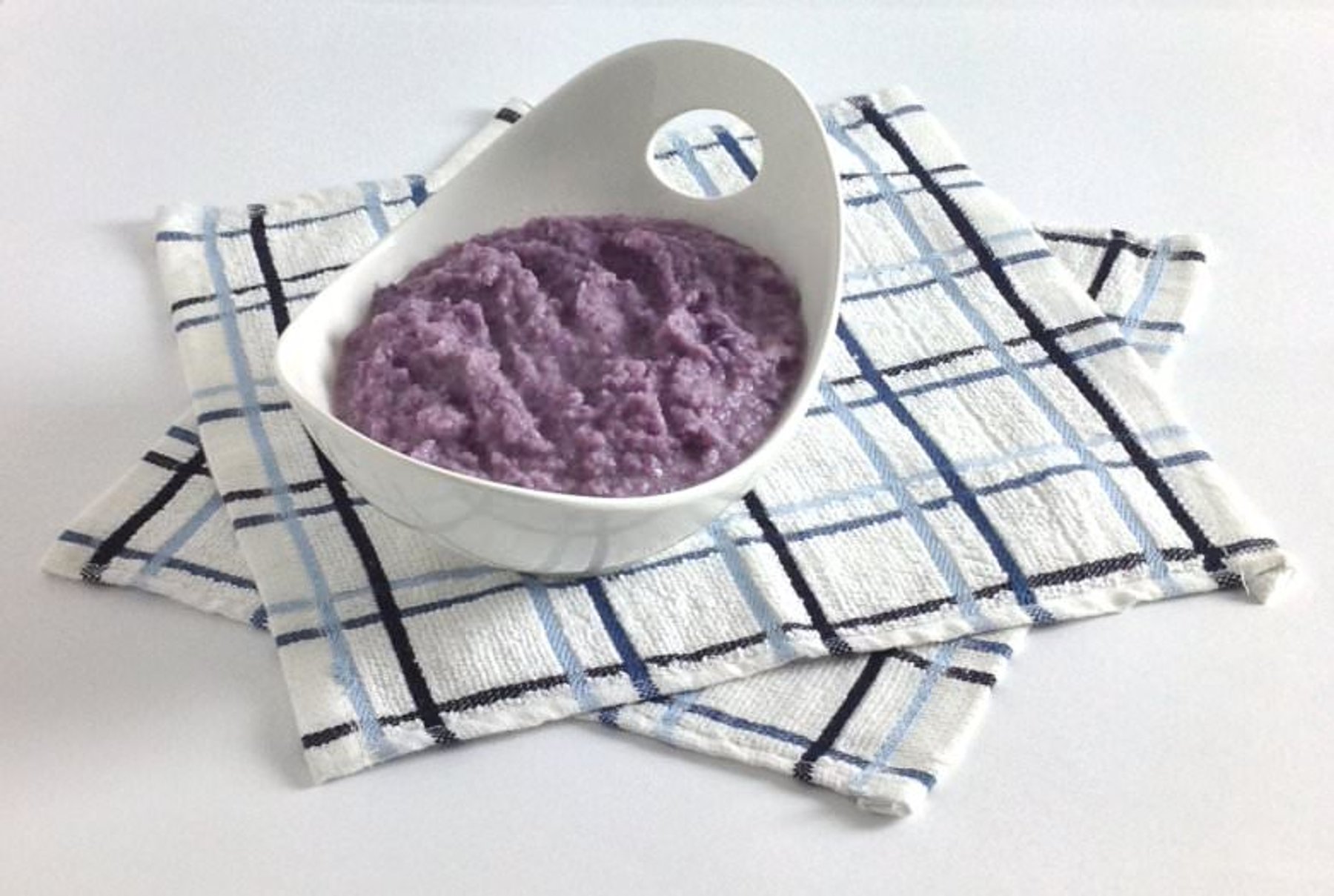 Purple Cauliflower Mash with Gruyere is a very colorful vegetable. Make the cheese part of your dish flavorful to counter the rather blend vegetable.
