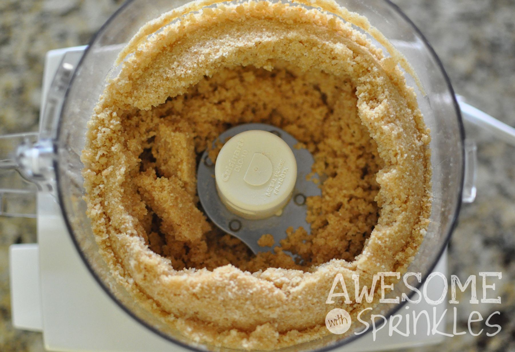 In a food processor start with about 2½ cups of whole cookies. Crush down into a fine grain. You will need about 2 cups of cookie crumbs. Add a few more cookies if you are shy or dump out some if you are...