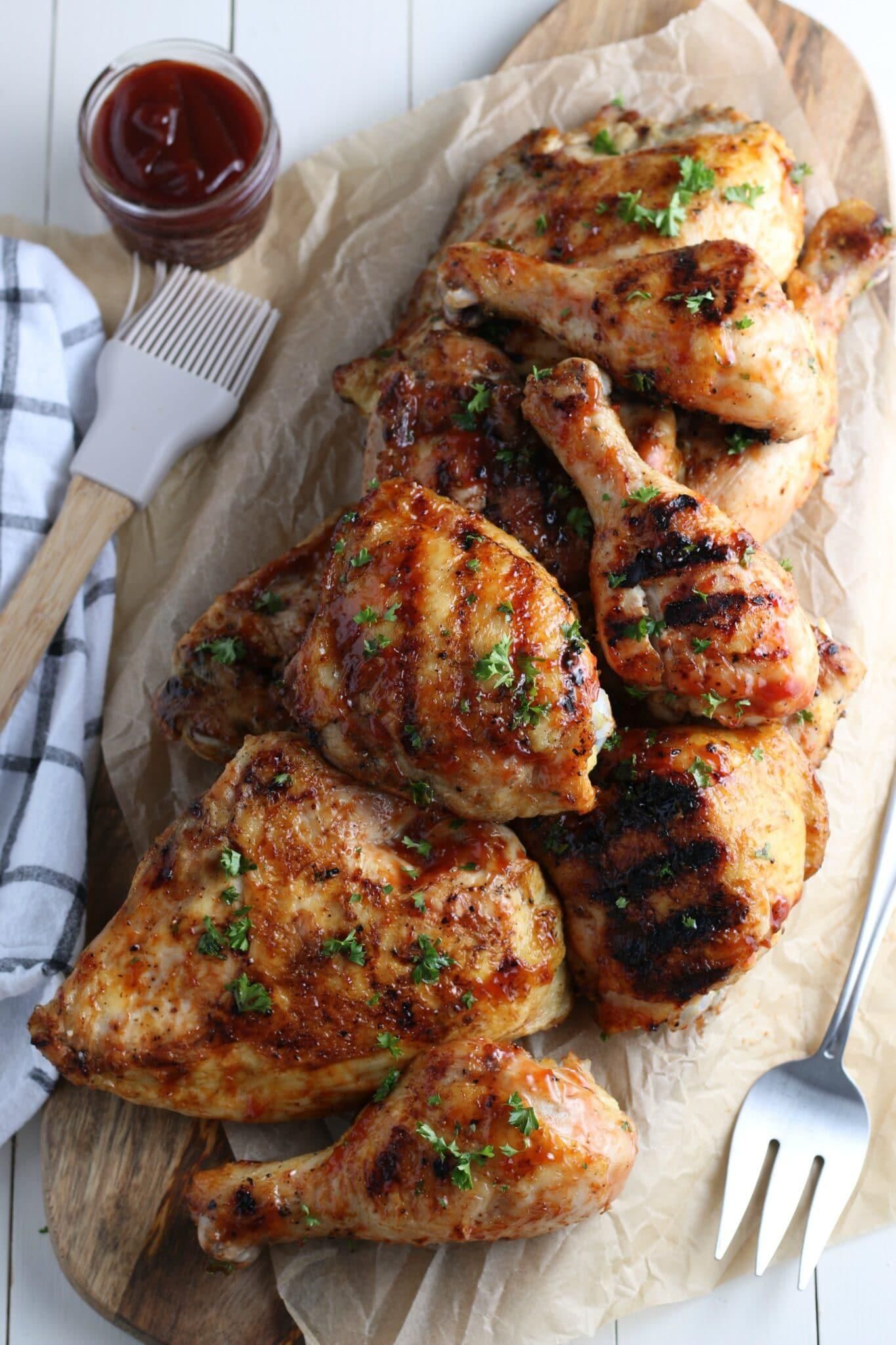 "This Easy Grilled BBQ Chicken is the perfect recipe for gearing up for warmer weather. Made with just 4 simple ingredients, you’re going to love the flavor and taste. This easy quick dinner is always a hit for families. Is it selfish to admit that I make this easy BBQ chicken recipe because I’m constantly craving the flavor? My kids don’t seem to mind because they love it as much as I do. Keep in mind that once the weather turns nice, it’s perfectly fine to use your grill for breakfast, lunch, and dinner! "