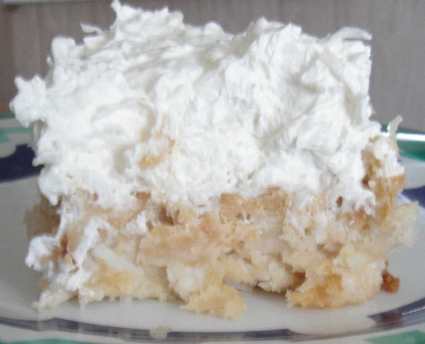 Mix white cake mix and large can of crushed pineapple together, liquid included. You shouldn’t have to add anything else to the cake mix because it will be moist enough.