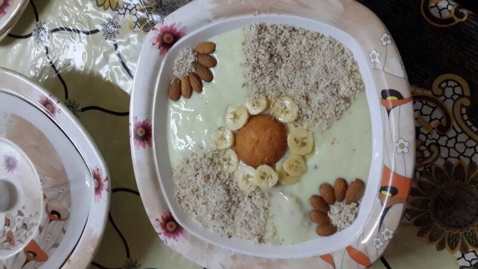 Break the banana into chunks and combine it with the water and dried skimmed milk in a blender (if you want to use liquid milk, just use 300ml in place of the powdered milk and water). Blend for 30 seconds...
