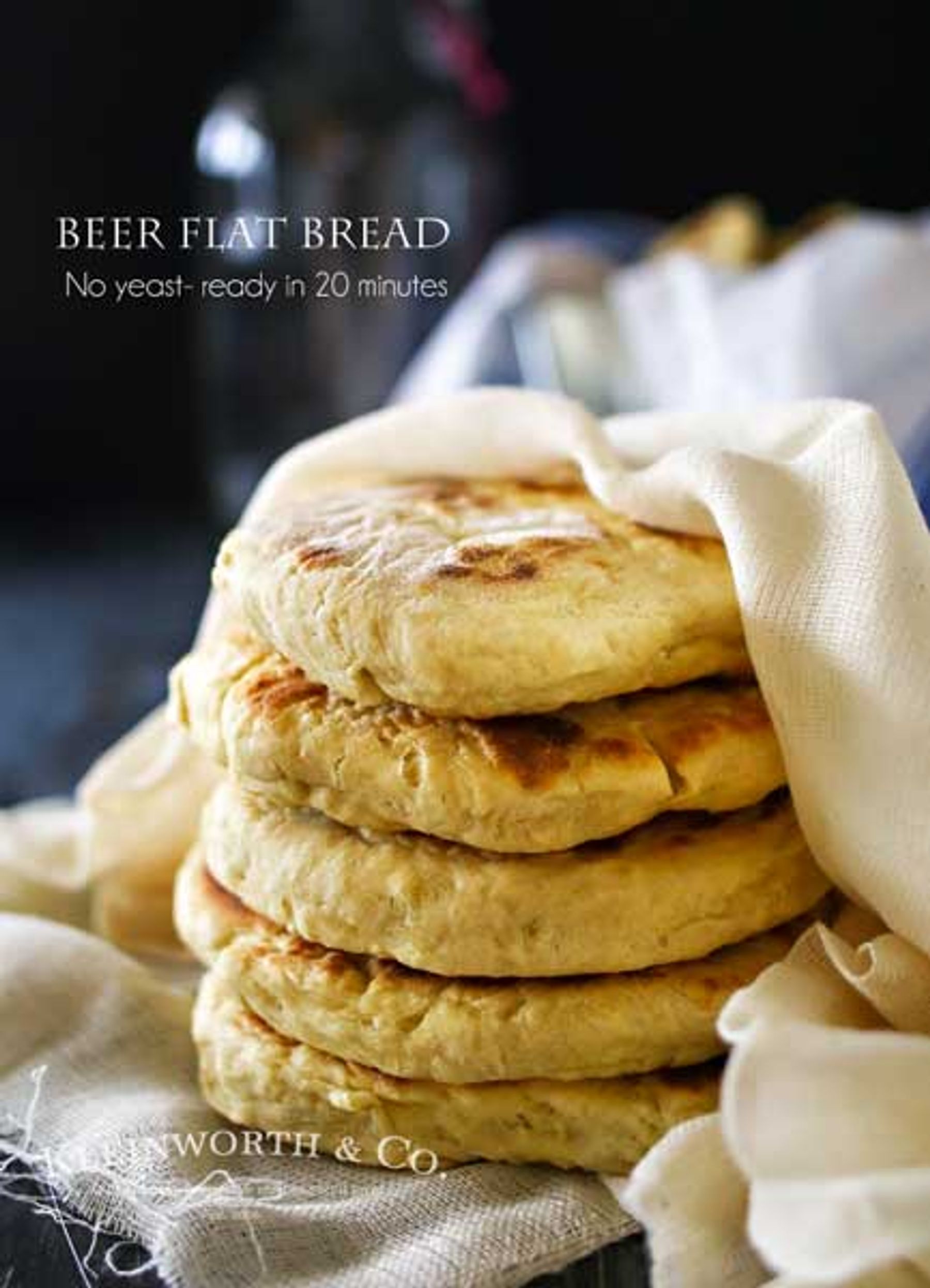 Quick Beer Flat Bread a great no yeast recipe that comes together in just 20 minutes. It’s easy & a delicious pairing with any meal. Definitely a favorite.