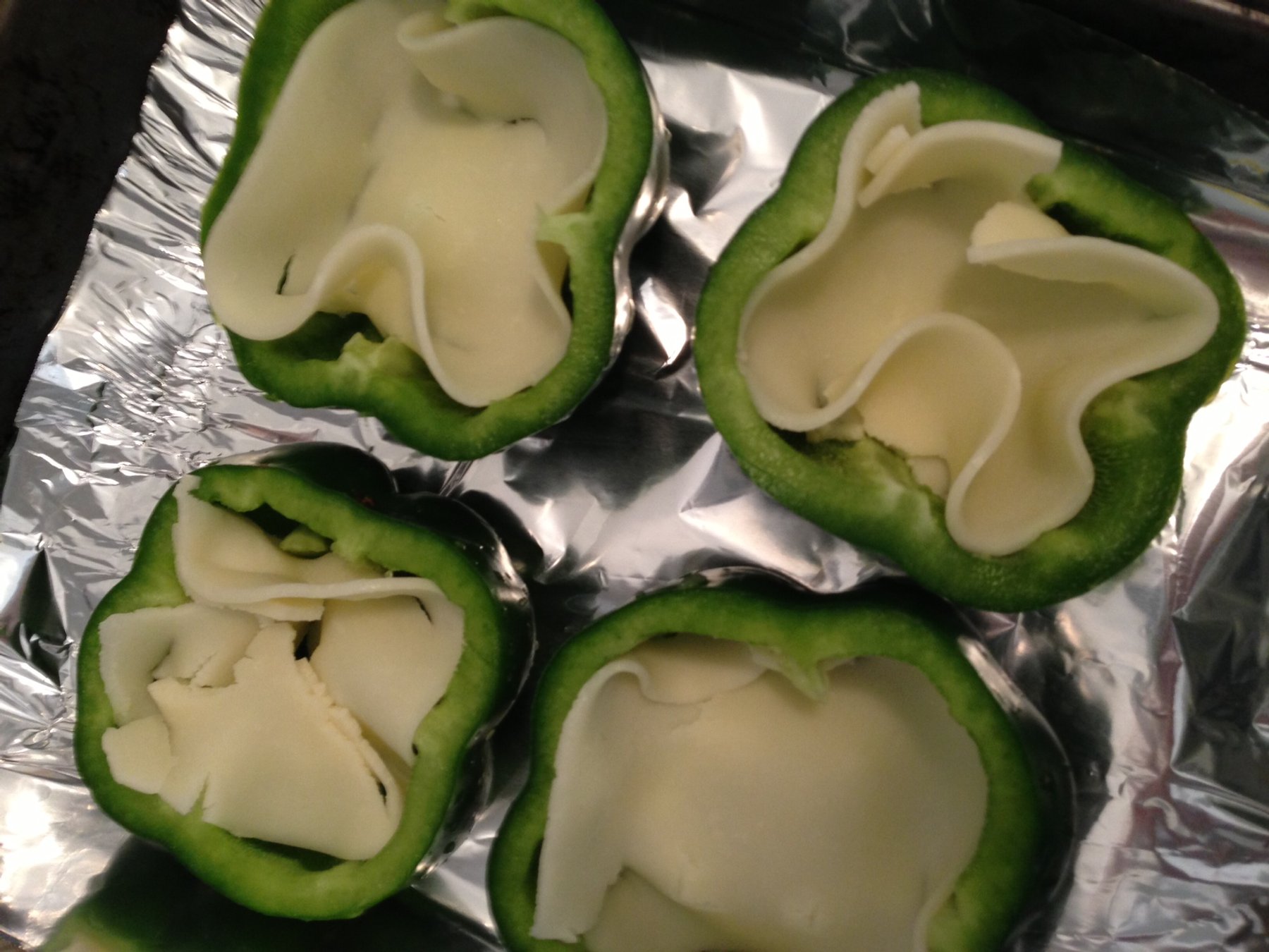 Preheat oven to 400 degrees F. Cut your peppers in half. You can do it either lengthwise or sideways and remove all the innards. Chop your onion into large pieces . In a saucepan, heat up your oil and...
