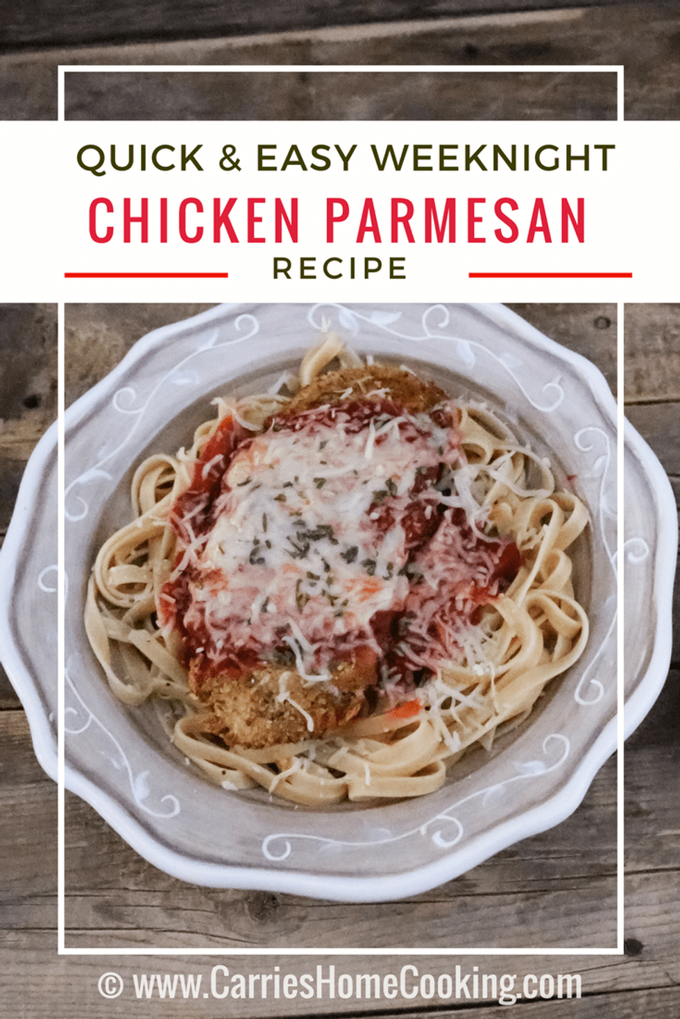 My Quick & Easy Weeknight Chicken Parmesan recipe is the perfect, easy to make weeknight recipe that you bake in the oven. With just a few simple steps and ingredients, you can have this delicious recipe on your plate in 30 minutes!